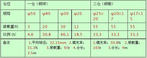 (2)參考同類企業生產數據:一倉鋼球裝載量60噸、二倉鋼鍛裝載量170噸。