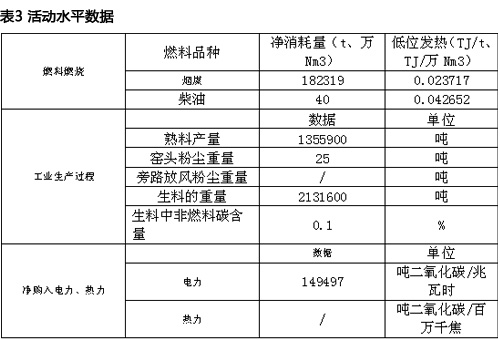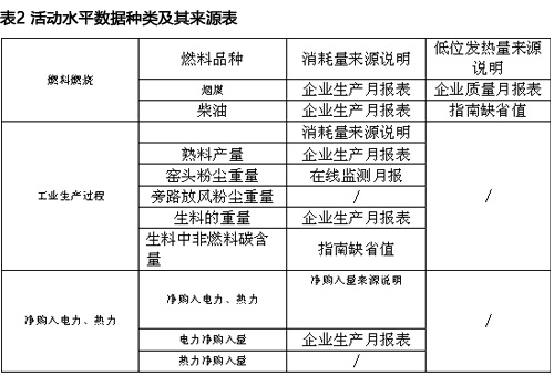 水泥企業涉及到的所有活動水平數據種類及來源詳見表2