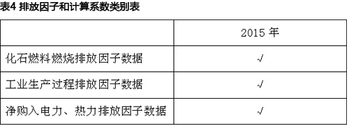 水泥企業二氧化碳排放涉及的排放因子和計算系數類別見表4。