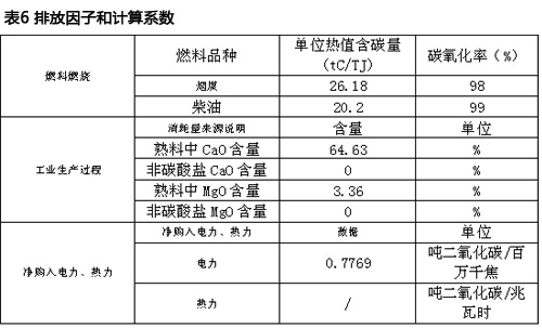 水泥企業涉及到的所有排放因子種類及來源詳見表5。