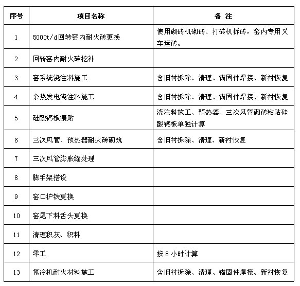 一、投標內容:窯耐火材料檢修,具體項目如下: