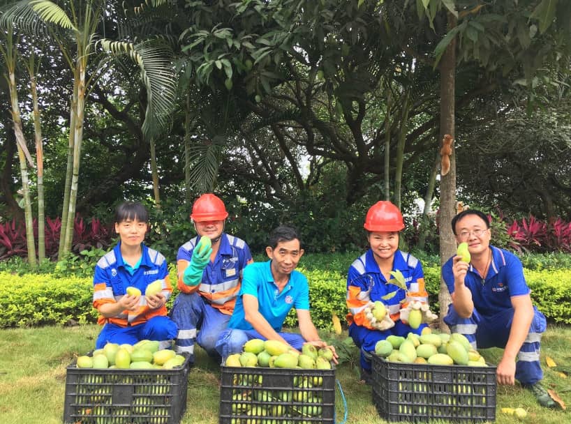 如今,正值果木成熟季,廠區內的芒果、菠蘿蜜、香蕉、木瓜等掛滿枝頭,景洪公司將統一組織采摘,全員共享。