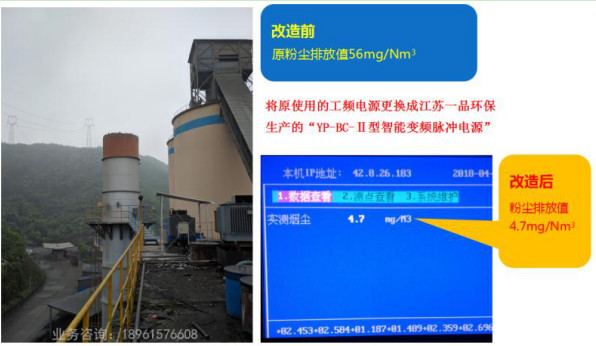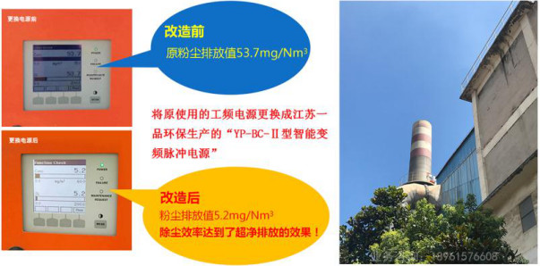 在確定選用電改電方案前,我們對除塵電源進行了專項考察,查閱了國內外先進的除塵電源技術,考察了國內多家除塵電源生產企業,經技術專業比較,多方論證,最終選擇了由江蘇一品環保研發生產的與國外先進除塵電源技術同步的“YP-BD-M型智能變頻脈沖電源”。