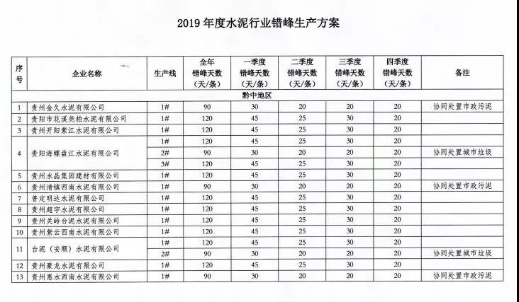 日前,貴州省工業和信息化廳與貴州省生態環境廳聯合發布《關于做好2019年度水泥行業錯峰生產的通知》。