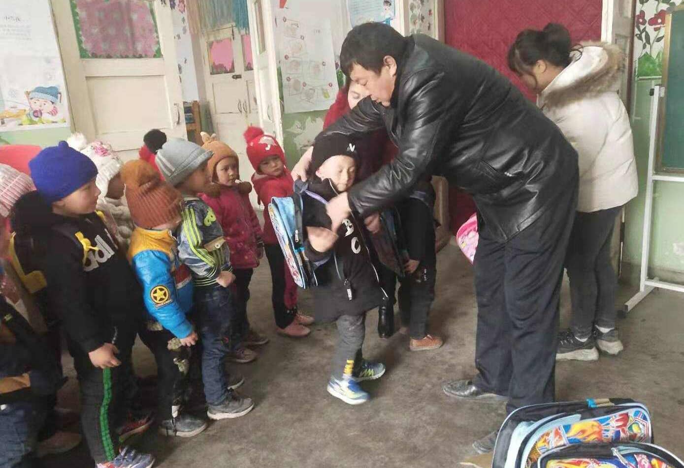一份耕耘,一份收獲。去年底,烏帕爾中心幼兒園對全鎮各村幼兒園進行了期終測試,十二村幼兒園小二班順利通過了測試,且部份小朋友成績優秀,受到了中心幼兒園的表揚。于是在今年放寒假時,吳志強自費購買了三十二個書包,兌現了對小朋友們的承諾。