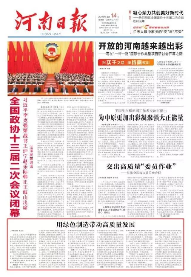 2019年全國兩會召開之際,河南日報記者專訪了中國聯合水泥河南區總裁劉宗虎,解碼綠色發展如何帶動高質量發展。