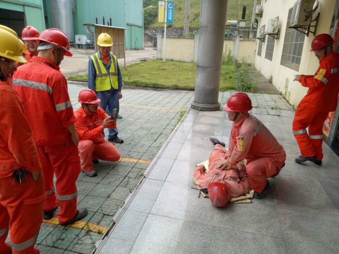 為確保此次演練順利開展,在模擬演練前,該公司安全部組織參演責任人進行了方案修改與現場預演討論。本次演練切合該公司工作實際,模擬設備檢修人員在受限空間(2號磨機內)進行維修作業,因磨機壁溫度過高,一名作業人員突然體力不支暈倒,另一名作業人員有口渴、頭暈、乏力等身體不適先兆。
