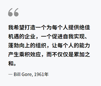 戈爾的創始人Bill Gore是一位科學家,他最早在杜邦工作。當時杜邦采用的是典型的自上而下的金字塔式的管理模式,無法最大化發揮員工的創造性。Bill Gore在創立戈爾的時候,就承諾要打造一個盡可能扁平化的管理模式,激發每一位員工的創新能力,使他們能在自由、快樂的環境中工作。