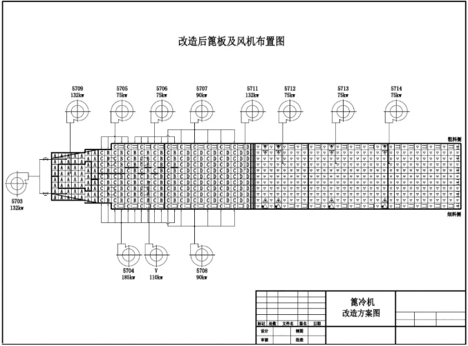 唐山冶建項目經理介紹稱,我國三代篦冷機的單位面積冷卻能力多在37~43t/d.M²,經改造后的單位面積冷卻能力可達到50~55t/d.M²。國內四代機的單位面積冷卻能力多在45t/d.M²,更換四代機提高冷卻能力是靠擴大篦床面積,增加投資實現的。而篦冷機改造提高冷卻能力是靠應用新技術實現的,其優勢是指標先進、施工周期短,投資少。