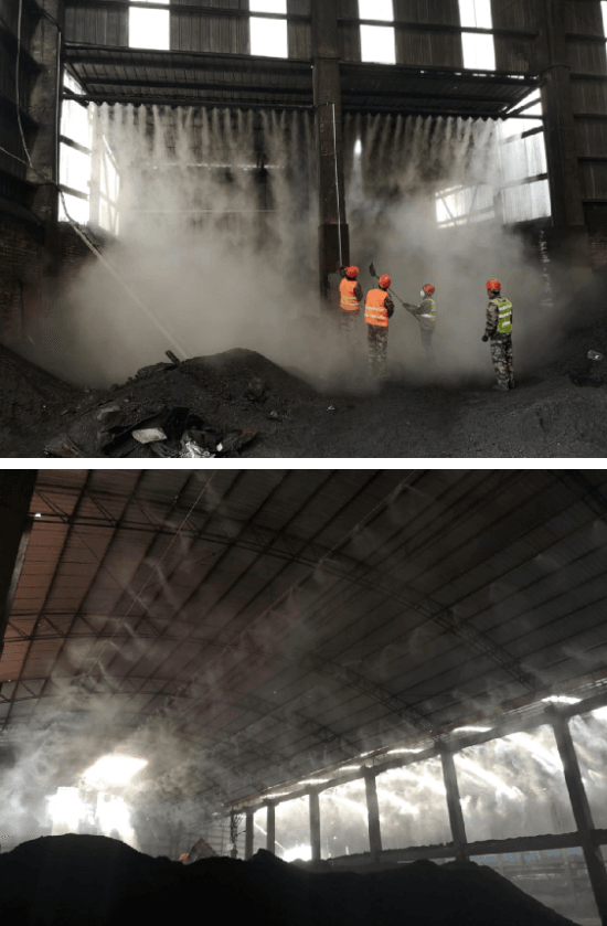 2.快速高效抑塵。在開啟高壓噴霧抑塵設備3-5分鐘內能達到80%的抑塵效果;