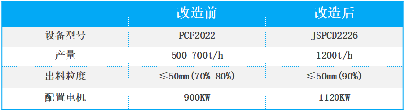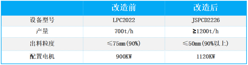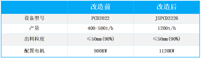 1、通過原破碎機改造,實現了提產、降耗,同時破碎后石料粒型實現了可控可調,既能滿足水泥廠生料的需要,同時也可以滿足混凝土對骨料性能的需求。