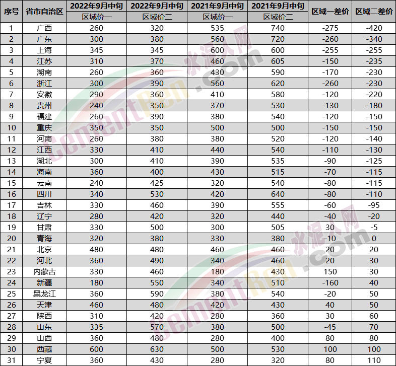 據水泥人網此前消息,進入9月,南方多地水泥價格出現回暖跡象,特別是進入9月中旬以來,廣東、廣西、江西、福建、江蘇、浙江等多區域水泥價格持續上漲,水泥企業門前又現排隊現象。