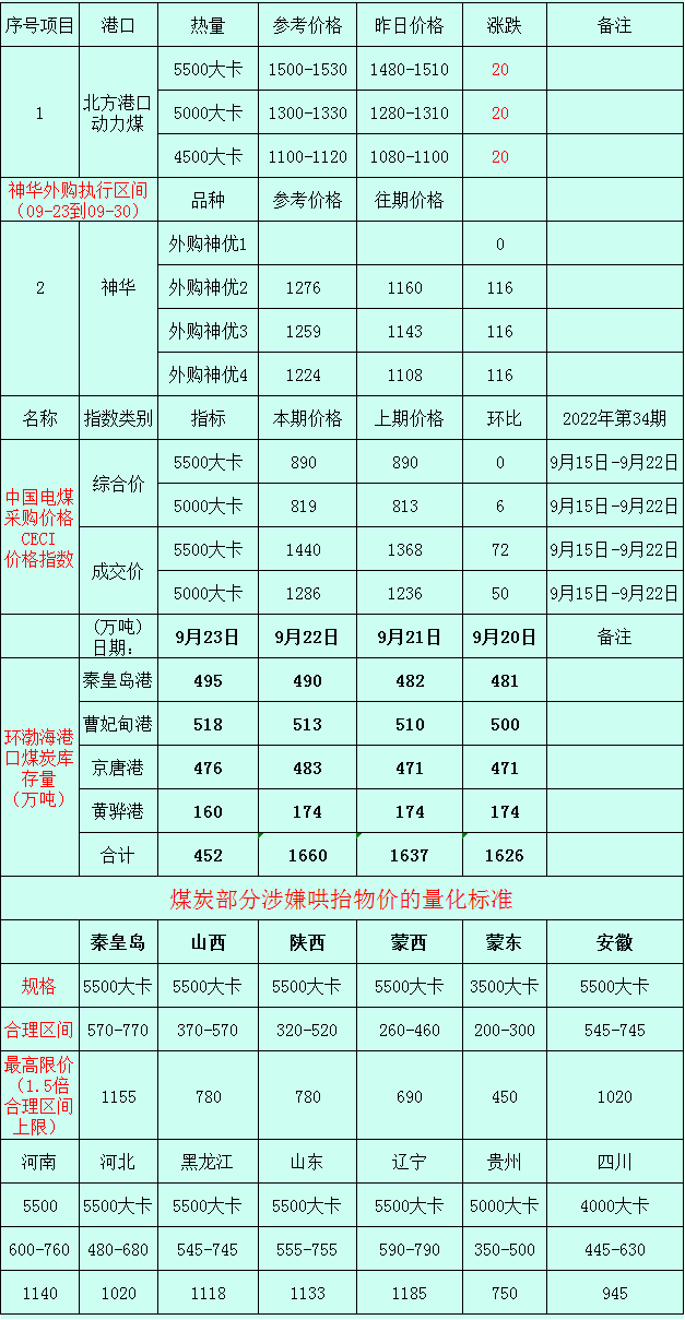備注:以上價格來源于煤炭每日價格,僅供參考,如有差池請以實際數據為準!