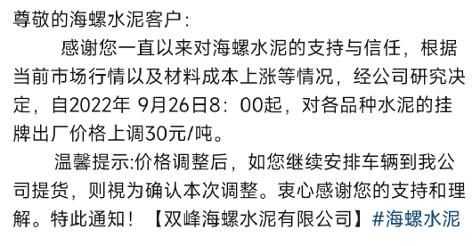 據經銷商反饋,海螺水泥銷售經理及經銷商多在群里或公眾社交媒體上發布調價消息,但是落實到電商系統里的時間與通知時間偶爾也會有出入。
