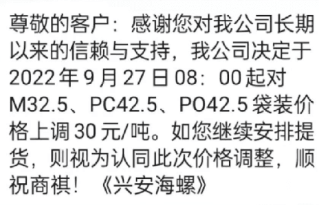 據了解,絕大多數水泥企業上調水泥價格前,都會提前一天或幾天通知到經銷商,經銷商會根據自己的訂單情況選擇是否提前“囤貨”。