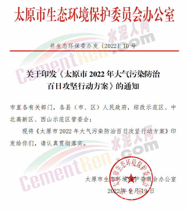 前不久,太原市生態環境保護委員會辦公室印發《太原市2022年大氣污染防治百日攻堅行動方案》,針對秋冬季對大氣環境質量影響較大的PM2.5、PM10、NO2和SO2四項指標,采取強有力措施,大幅削減顆粒物、氮氧化物、二氧化硫等污染排放。經研究,決定在全市開展大氣污染防治百日攻堅系列行動。百日攻堅時間從今年9月22日至12月31日。