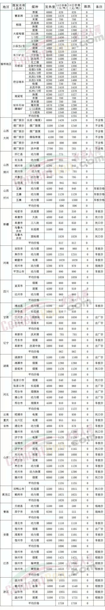 其中本期5800大卡山西混煤報價1610元/噸,較9月下旬上調36.4元/噸,漲幅2.3%。同比上年同期報價1414.2元/噸,上漲195.8元/噸。山西優混5500大卡,報價1510元/噸,較9月下旬上調35.7元/噸,漲幅2.4%。同比上年同期1398.3元/噸上漲111.7元/噸。