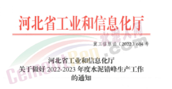 河北省發布《關于做好2022-2023年度水泥錯峰生產工作的通知》要求水泥企業從2022年開始供暖之日至2023年開始供暖前一日,開啟采暖季錯峰生產,全年錯峰天數共150天。其中,采暖季120天,非采暖季30天。