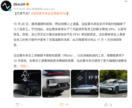 即使是一片火熱的新能源汽車也未能獨善其身,賈躍亭旗下的新能源汽車公司法拉第未來由于受到美股、匯率等因素波動,導致其現金流出現了問題。該公司已經通過郵件向全員通知全員降薪25%,以維持公司日常所需現金流。