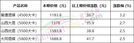 2022年10月下旬流通領域重要生產資料市場價格變動情況顯示,2022年10月下旬與10月中旬相比,15種產品價格上漲。其中4500-5800大卡煤炭報價在1183.8-1688.8元/噸,較10月中旬上漲36.7-41.7元/噸,漲幅2.5-3.2%。