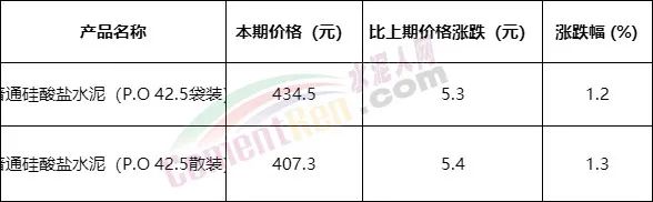 2022年10月下旬流通領域重要生產資料市場價格變動情況顯示,普通硅酸鹽水泥(P.O 42.5袋裝)報價434.5元/噸,上漲5.3元/噸;普通硅酸鹽水泥(P.O 42.5散裝)407.3元/噸,上漲5.4元/噸,漲幅1.2%~1.3%,水泥價格已突破400元/噸大關。