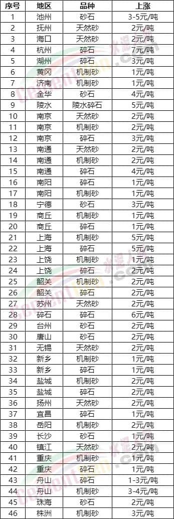 日前,廣東東莞、深圳商混協會和水泥制品協會發布緊急預警提到,自9月以來砂石價格已經上漲40-50元/噸,且因西江限流廣西進入量銳減,導致區域內砂石供應緊張,后期還有上漲可能。