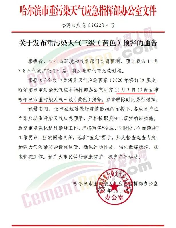 黑龍江哈爾濱啟動重污染天氣三級(黃色)預警
