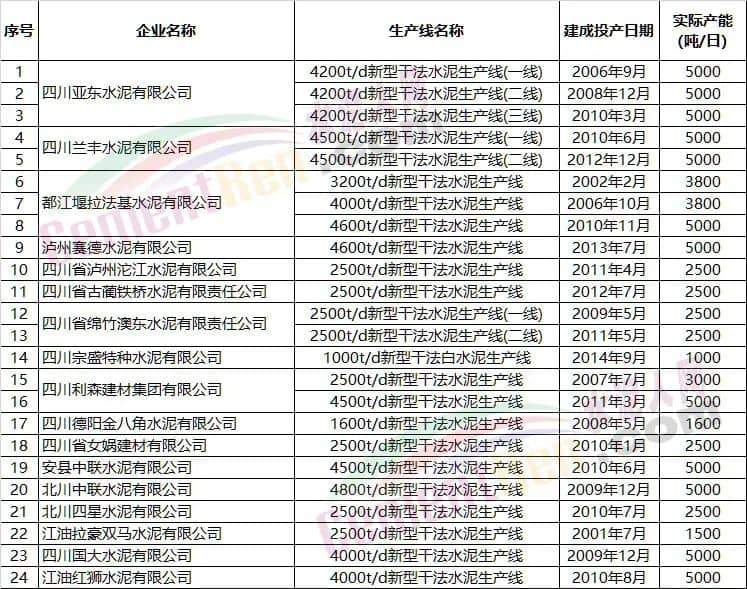 據水泥人網不完全統計,上述區域涉及四川、安徽、河北、黑龍江區域40多家水泥企業64條熟料生產線。