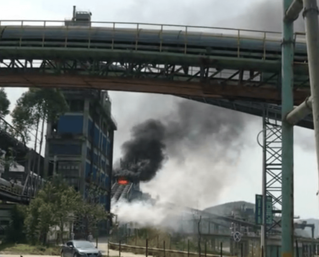2017年12月30日上午十點五十分左右,四川綿陽某水泥廠輸送帶發生火險,現場數十條黑龍并排沖天。事故發生時一名員工從輸送帶跳下時受傷骨折。