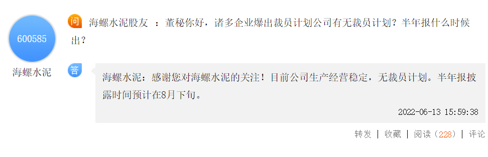 在“軟裁員”這條路上紅獅水泥也未能幸免。雖業績跑贏同行,但同比卻輸給了自己。此前曝出,紅獅水泥集團總部30%以上人員分流或賣斷工齡離職。企業負責人表示,部分產線因銷量下滑,員工工資隨之下降。但因其底薪相對較高,生產員工流失現象并不嚴重,僅有部分銷售人員請辭。