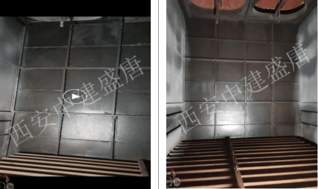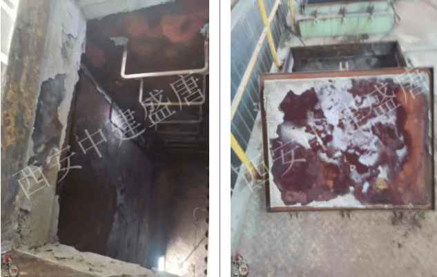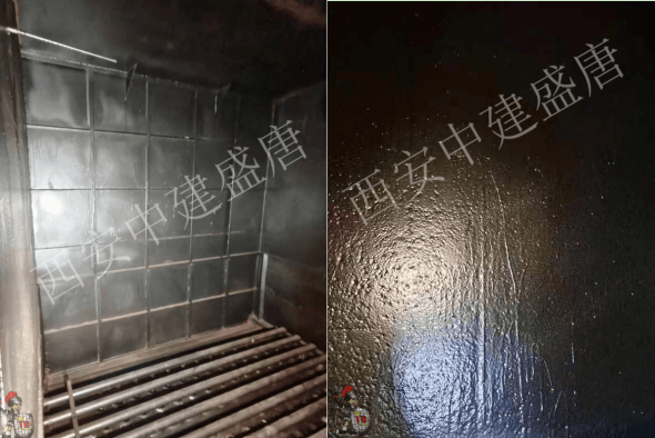 2020年7月,西安中建盛唐首先對水泥廠的二線窯尾收塵器內壁腐蝕部位使用TD104#石墨烯防腐涂料進行防腐施工。在使用3個多月后,對窯尾袋收塵氣室運行情況進行檢查,效果良好:檢查 10 個凈氣室5個面防腐涂料防腐效果良好,完整無腐蝕脫落現象;10個凈氣室東、西側及頂部三個面結晶現象較嚴重,清理結晶物后,防腐層完整,未滲透防腐涂料,防腐效果良好。