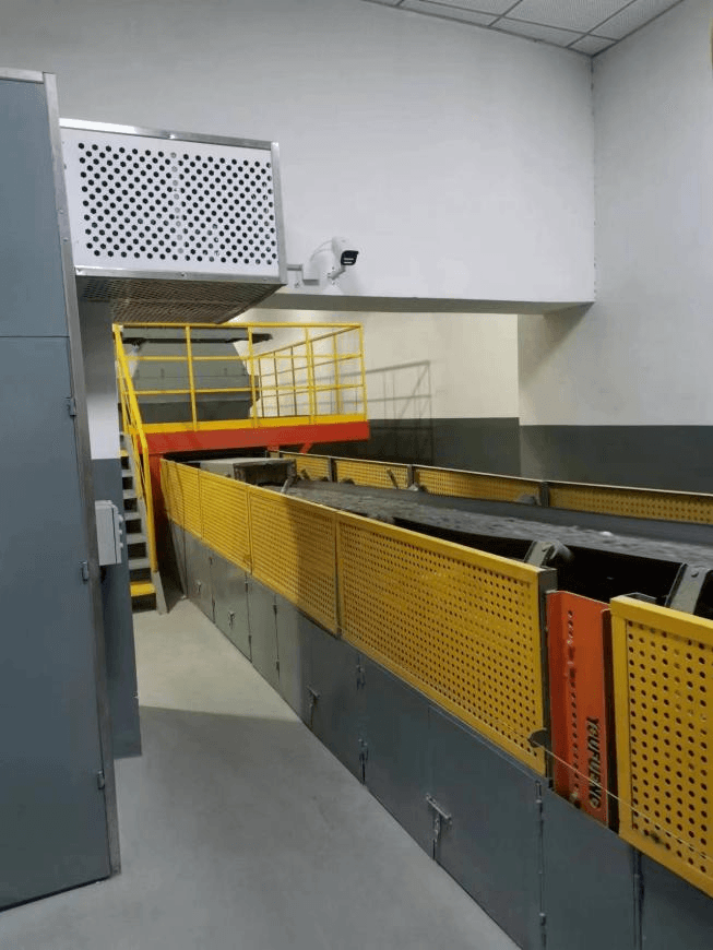 蘇州天山水泥生產工藝流程配置為4.2*13M管磨機+180*120輥壓機+TS4500雙轉籠選粉機,首先將各原材料按照一定配比通過電子皮帶秤計量混合后送至配料提升機,除鐵后進入循環提升機,提升至V型選粉機進行選粉,粗顆粒回恒重倉緩沖后進入輥壓機中碾壓,碾壓擠碎后通過循環提升機帶至V型選粉機,V型選粉機粗選出的較細物料進入TS4500選粉下轉籠初選,200um以上的顆粒通過下轉籠選粉后回恒重倉,小于200um的顆粒進入TS4500選粉機上轉籠再次進行選粉,合格品通過旋風筒收集送入成品斜槽與磨機成品進行混合,不合格品進入球磨機進行粉磨,球磨機粉磨后的物料通過出磨提升機提升至TS5000選粉機選粉,合格品通過系統風機帶入收塵系統收集后進入成品斜槽與TS4500成品混合,最終送入水泥庫作為水泥成品儲存,不合格品回球磨機進行再次粉磨。