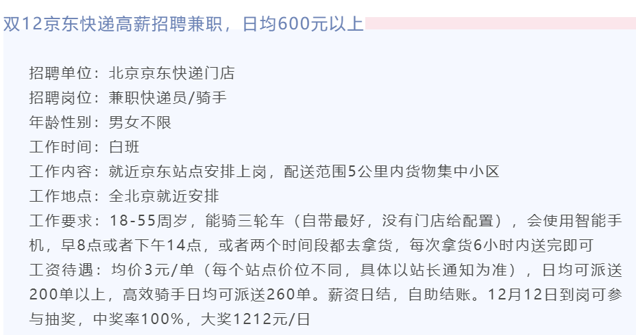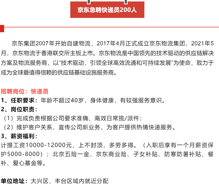為解決北京“末端投遞”的問題,京東物流在12月14日下午從全國調集的首批1000余名快遞小哥已陸續抵達北京,定向增援北京市內的快遞配送等工作。他們于15日起陸續投入到北京全市的快遞配送工作中,后續還將有數百名小哥在本周內抵京。