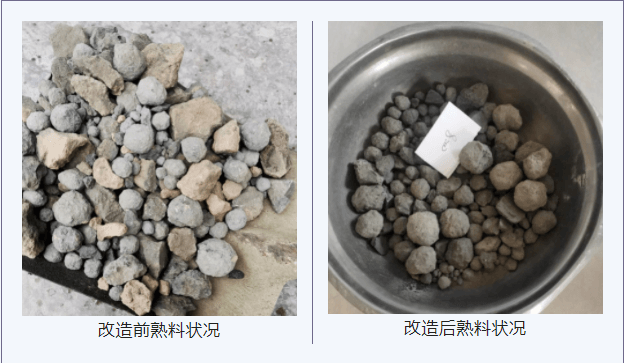 項目在 11 月初完成施工并開始運行,運行后,在操作上完全采用“精準平衡操作技術”:三次風管閥門從原來的只能打開 35%,到實現了 100%的全開(點火的時候就全開);窯頭噴煤管從原來的定位在窯口中心線以下調整到中心線以上 30-50mm;通過調整原來使用的噴煤管的內外風量和風速的匹配,實現了“正常火焰煅燒制度”。