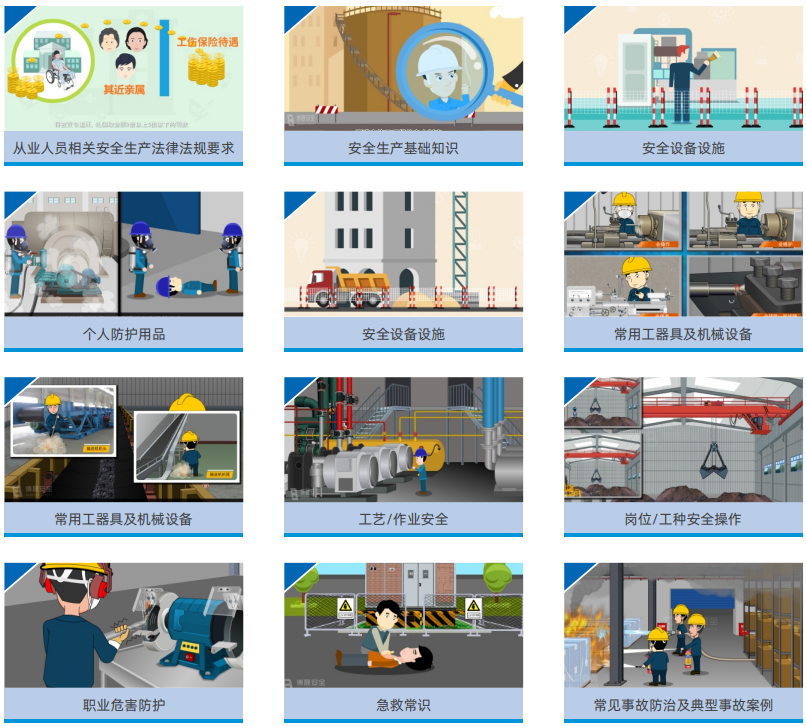 結合水泥企業高危崗位和工種安全操作要點、典型事故案例等,為水泥企業配置了專業、適用的安全生產培訓課程,涵蓋以下培訓內容: