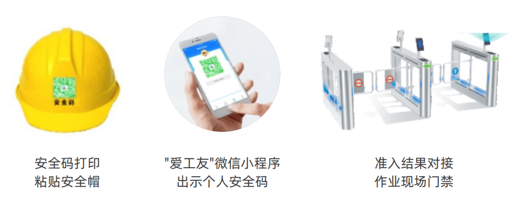 相關方人員正式入廠后,賦予“一人一碼”,可在“愛工友”微信小程序上查看個人安全碼狀態,安全碼狀態的準入結果對接作業現場門禁,綠碼和黃碼狀態可通過門禁,紅碼及灰碼禁入。
