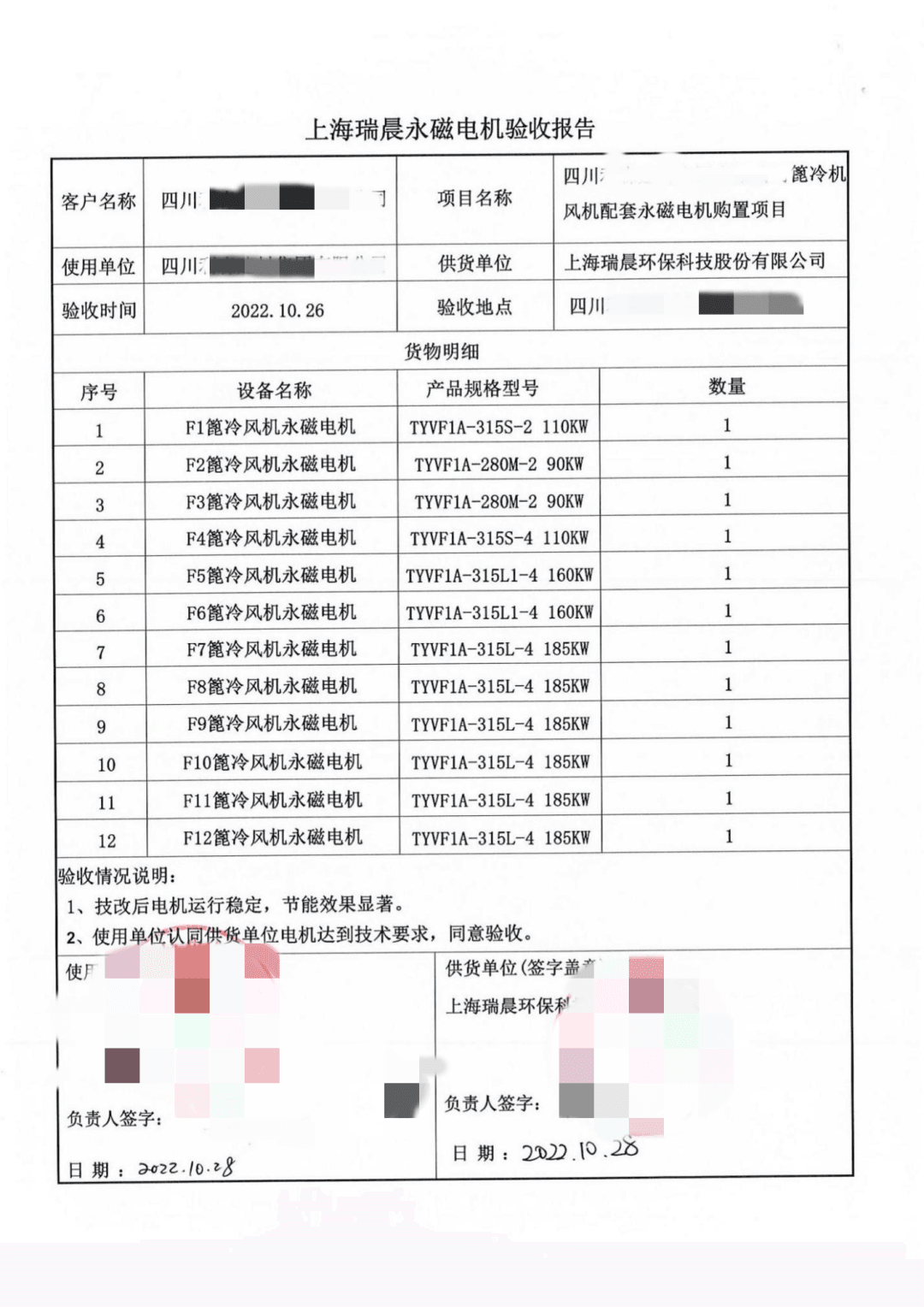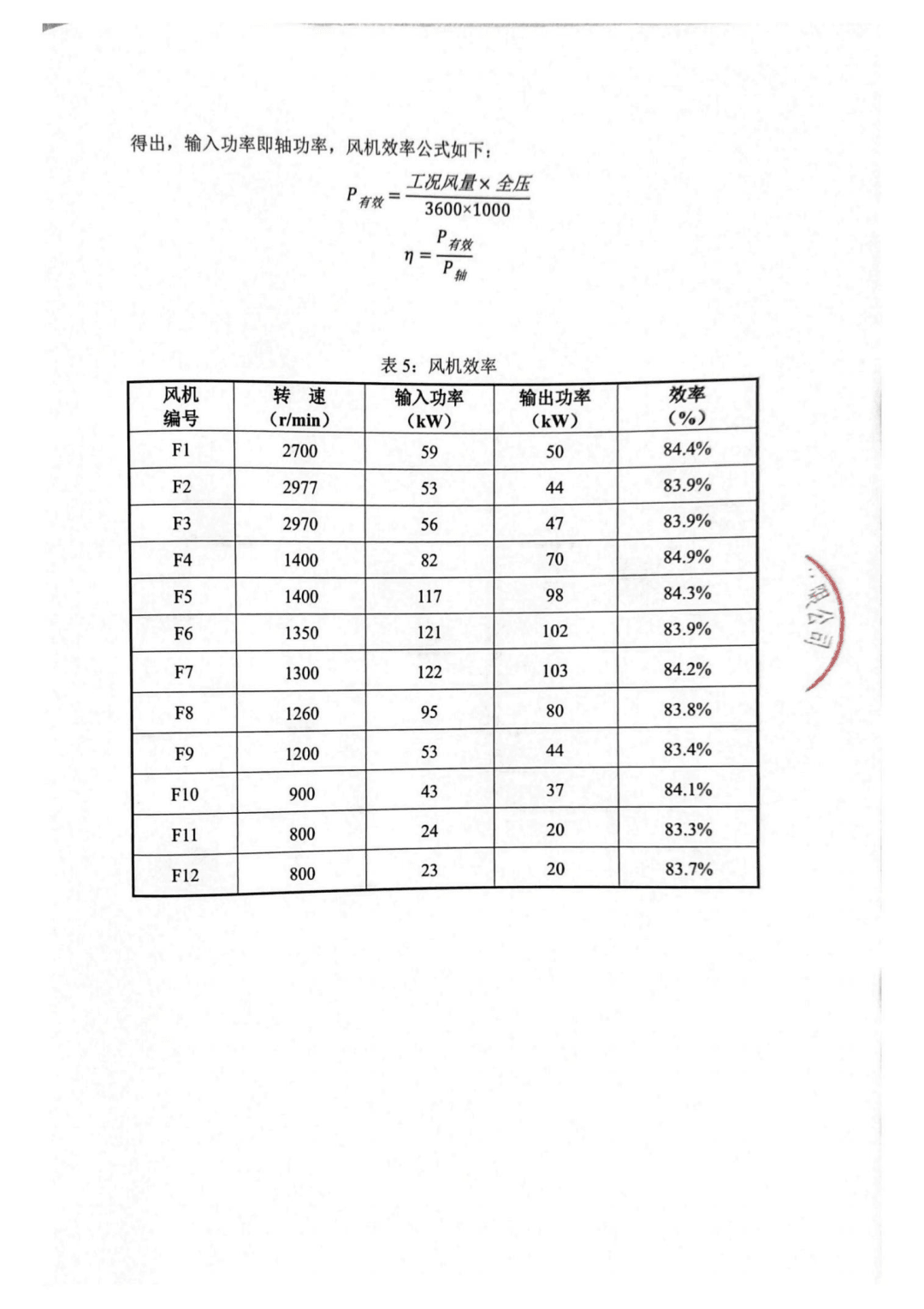 在篦冷風機和永磁電機正常運行后,該水泥企業聯合瑞晨環保和第三方對其進行驗收,驗收報告如下所示: