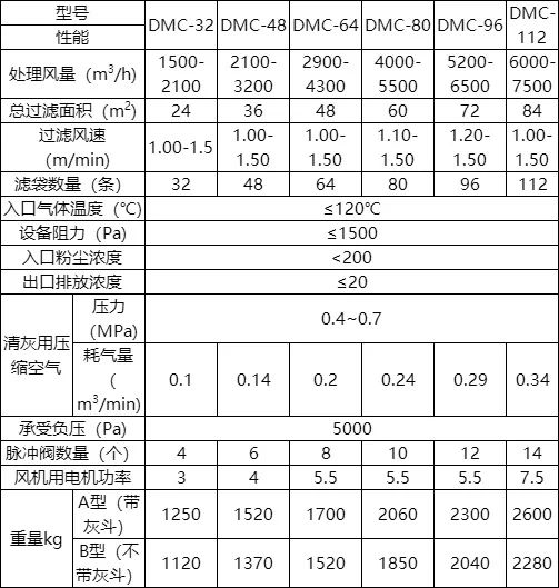 本系列除塵器共有六個規格,每種規格又可分為標準帶灰斗式A型和敞開法蘭式(無灰斗)B型兩種。其結構主要由過濾室、濾袋、凈氣室、灰斗、卸灰閥、脈沖噴吹裝置、電控箱等組成,箱體全部采用焊接結構,檢修門用泡沫橡膠條密封,保證除塵器嚴密不漏風。