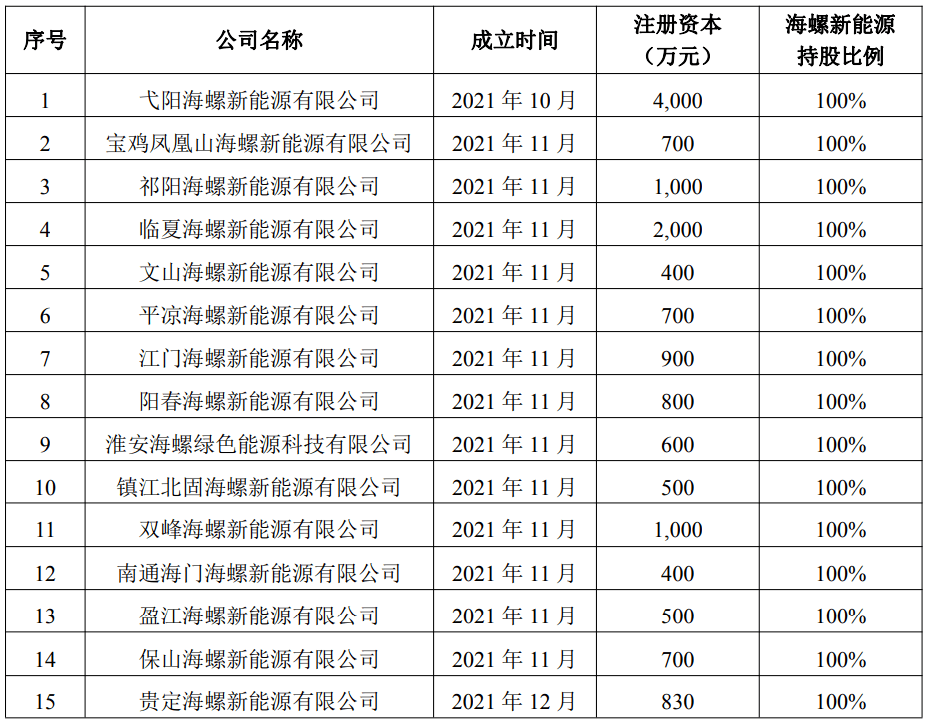 2021年10月至12月,海螺新能源獨立出資設立了15家新能源公司。