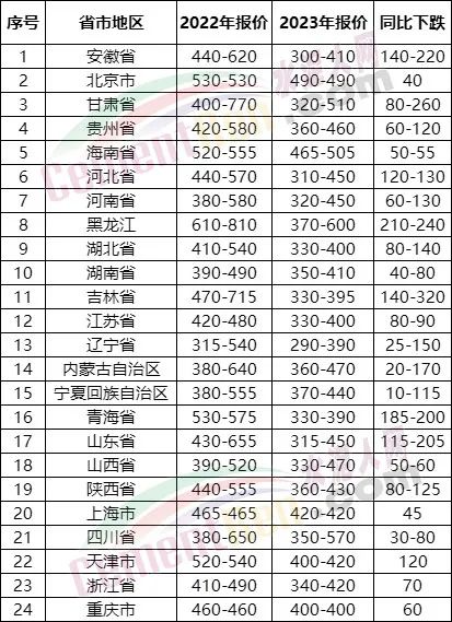 同比上年同期24個省市地區跌價,最高跌350元/噸