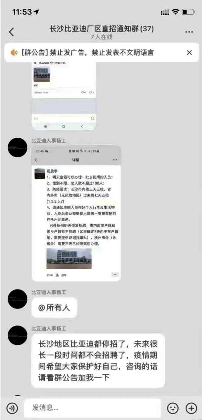 長沙比亞迪全部停招,蘋果昌碩科技暫停招募代工,蘇州立訊已經停招,成都5大工廠(富士康、京東方、仁寶、偉創、捷普)基本都已“熄火”,目前現在廠里都飽和了,要十幾個人,都能去一百多人。