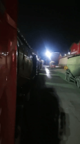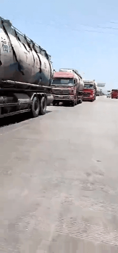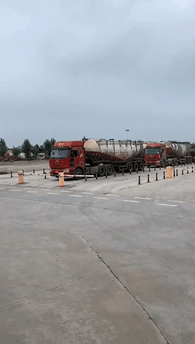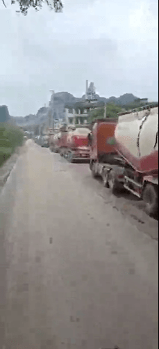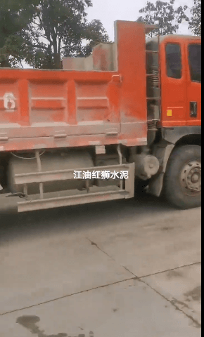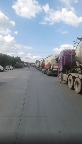 江西吉安市區域紅獅水泥廠外水泥車排隊