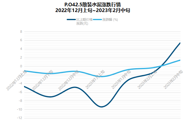 P.O42.5散裝水泥不足400元/噸的報價,從上年12月下旬至今已經持續了5個統計周期。且從2022年12月上旬起一直連續6個統計周期下跌,直至今年2月中旬才見反彈上行。