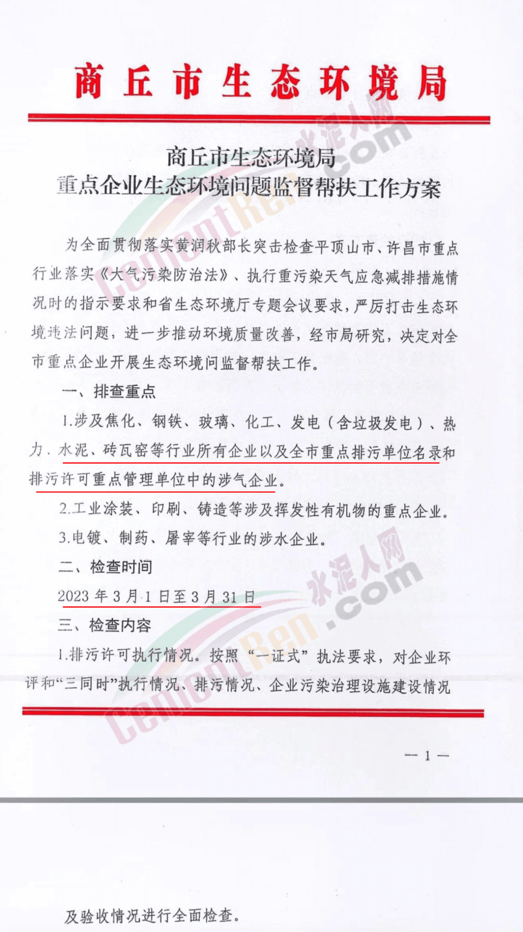 河南商丘3月份大檢查,主要針對水泥、磚瓦窯等行業所有企業