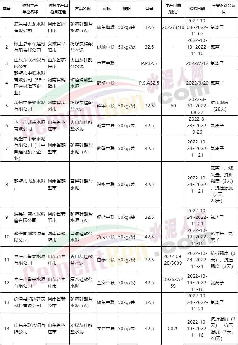 質量萬里行部分不合格水泥名單