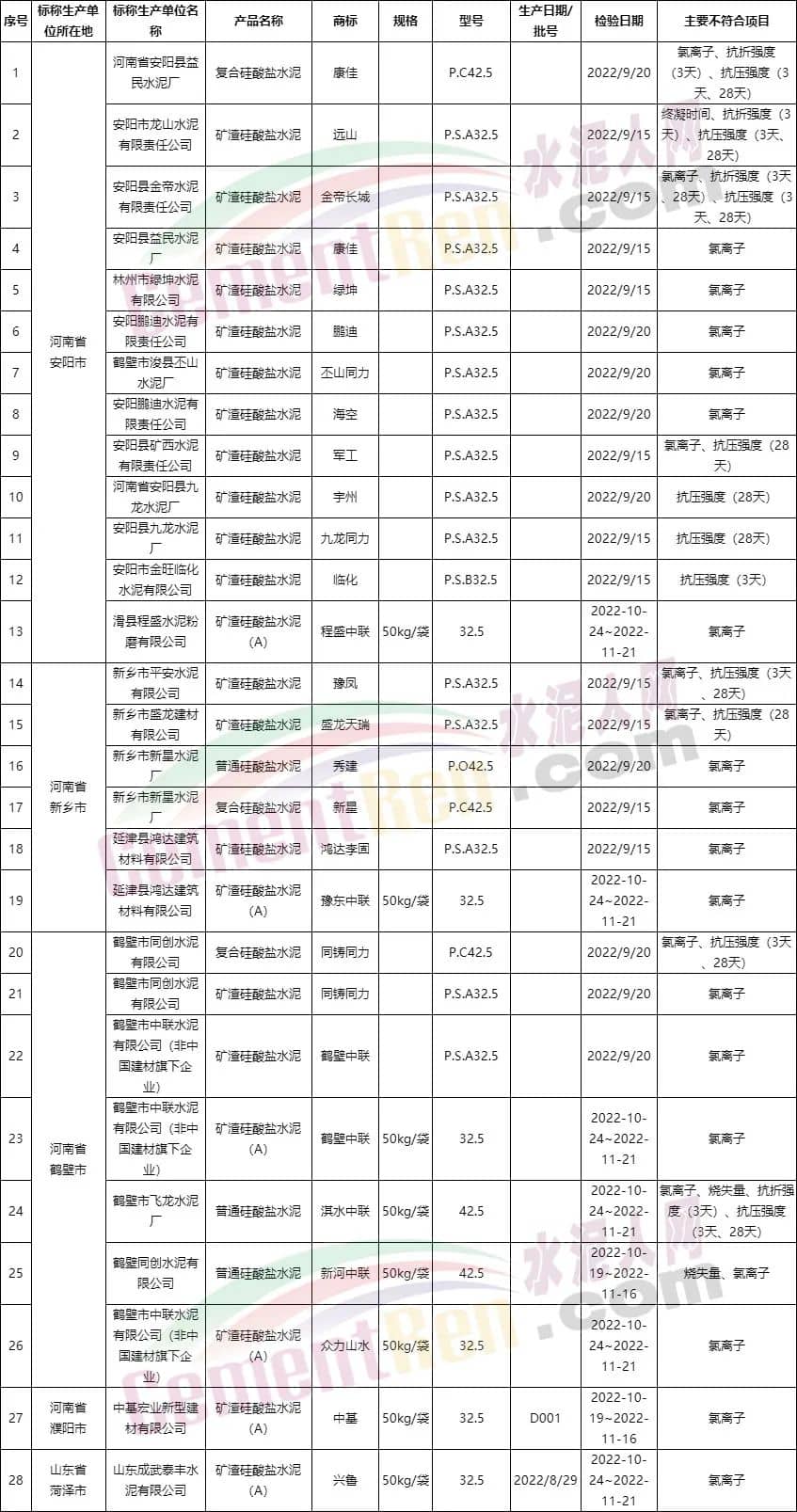 近期,菏澤及豫北水泥質量抽檢結果已經出爐,但是抽檢結果卻讓人大跌眼鏡。菏澤及豫北區域共抽檢43批次不合格水泥,其中28批次不合格,合格的產品僅15批次,不合格率達到了驚人的65.1%。