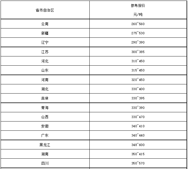 31省市地區P.O42.5散裝水泥市場