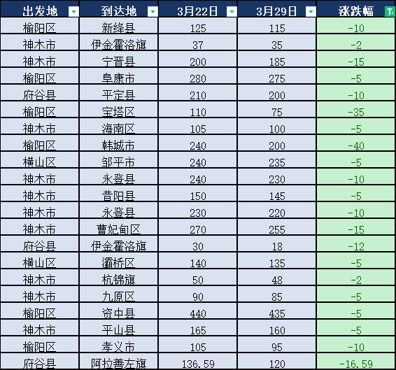 據了解,近期產地煤炭市場延續偏弱運行行情,煤礦整體銷售未見好轉,價格繼續小幅下調。目前市場看跌預期不變,電廠以長協采購為主,化工保持剛需采購,市場煤需求持續低迷,公路運力寬松,中長途運費普遍下行,僅上一周就累計下跌30-50元/噸。