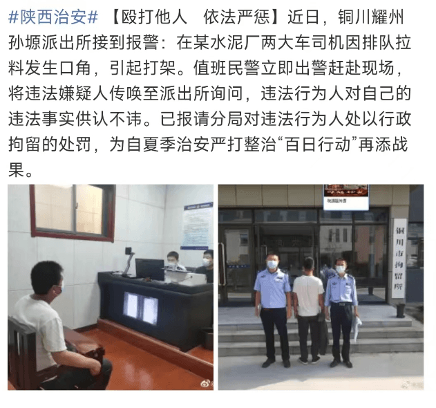 銅川耀州孫源派出所接到報警,在某水泥廠兩大車司機排隊拉料發生口角,引起打架。