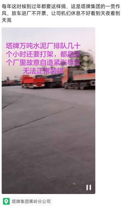 在公眾社交平臺上,常有類似事件被曝光出來,也有眾多司機及經銷商吐槽在水泥廠的糟心經歷。